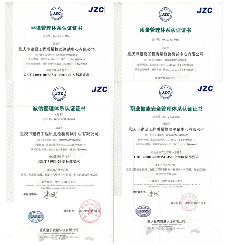 近日,經(jīng)過質(zhì)量、環(huán)境、職業(yè)健康安全、誠(chéng)信管理體系現(xiàn)場(chǎng)評(píng)審,重慶設(shè)計(jì)集團(tuán)市建科院公司所屬子公司——重慶市建設(shè)工程質(zhì)量檢驗(yàn)測(cè)試中心有限公司(簡(jiǎn)稱檢測(cè)中心)順利通過2023年度ISO資質(zhì)再認(rèn)證評(píng)審。