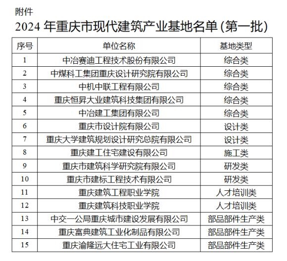 市建科院公司獲批“重慶市現代建筑產業基地”