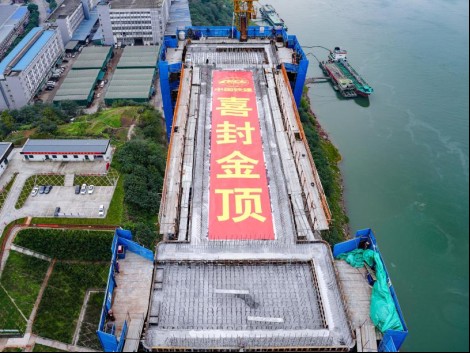 11月26日,隨著北岸主塔澆筑完成,由重慶市建筑科學研究院有限公司承擔監理的市級重點項目——渝長高速復線連接道工程(海騰立交—南橋頭立交)黃桷沱長江大橋主塔全部封頂,該橋是目前世界最大跨徑公軌兩用懸索橋。