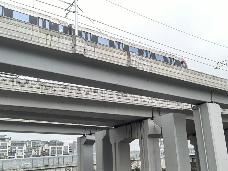 本次荷載試驗對象為該工程2.1km高架橋,涉及到3個車站區間,橋梁結構形式復雜,包括簡支梁橋、連續梁橋、連續鋼構橋等結構形式。其中,部分橋梁還存在與即有運行線路交叉的情況。為保證荷載試驗的順利開展和檢測數據的科學準確可靠,檢測人員做了大量前期準備工作,編制了專項檢測方案并進行了專家評審。本次荷載試驗相當于在橋梁通車前進行一次全面“體檢”,旨在全面了解橋梁結構在荷載作用下的實際工作狀態,為施工質量控制、運營安全評估及后續的維護加固提供基礎數據和技術支持。‌